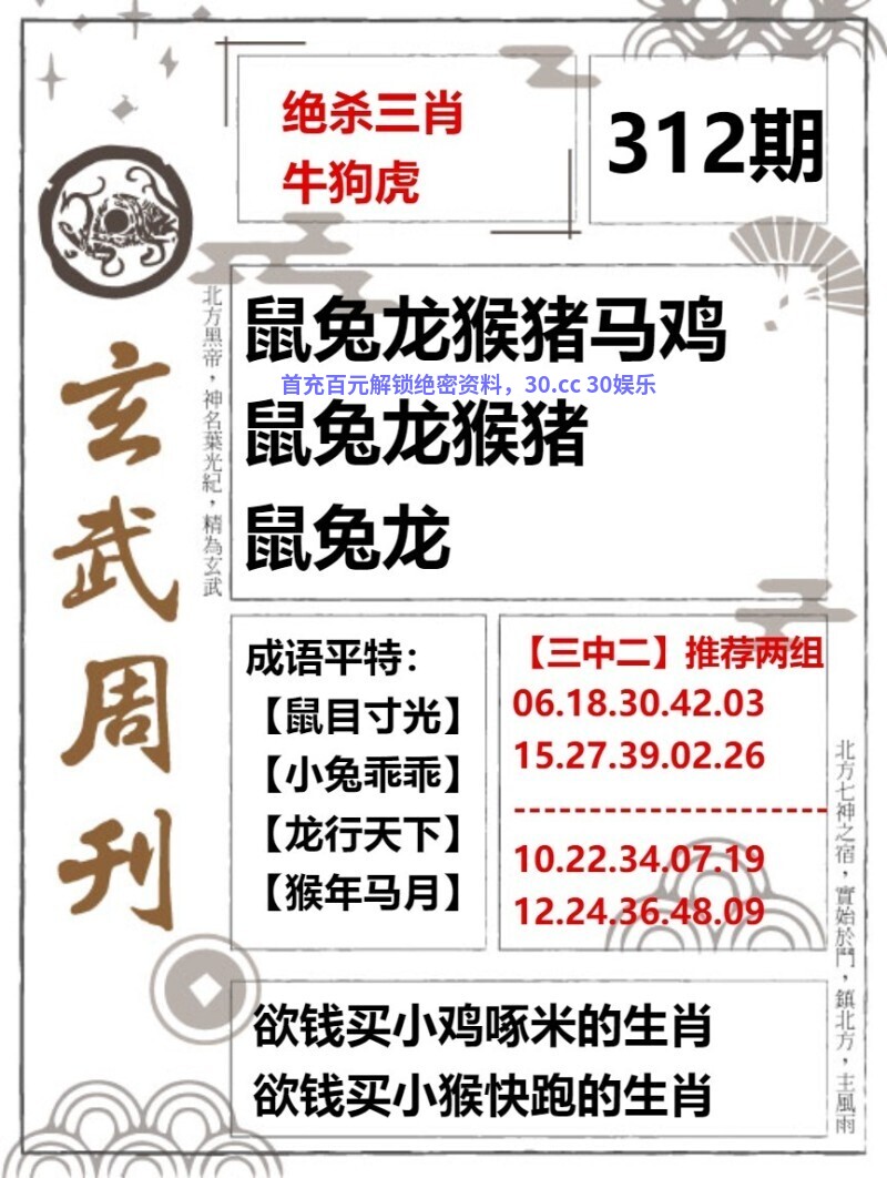 - 315期:澳门王者论坛④肖④码期期中奖✔