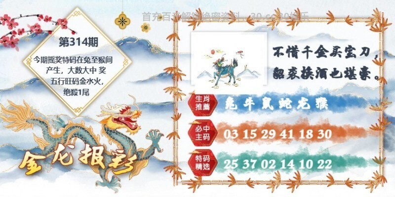 - 315期:澳门飞龙在天网四字平特连连中✔