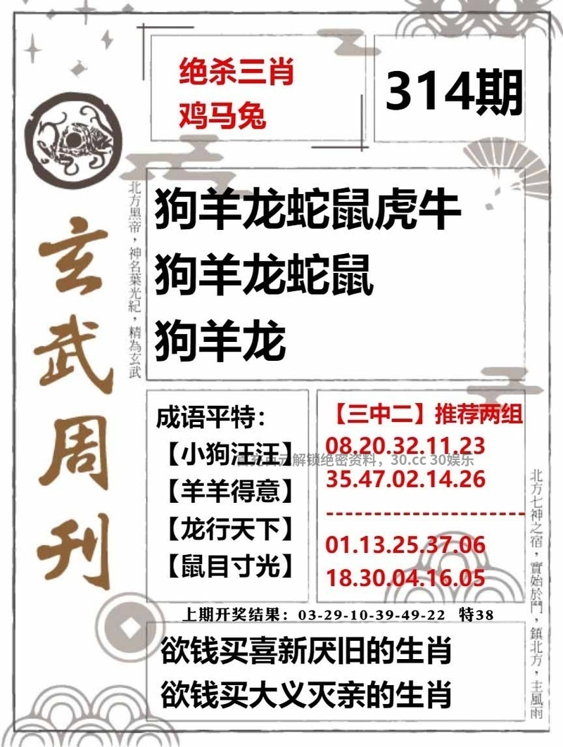 - 315期:澳门三仙财富复式四连期期中奖✔